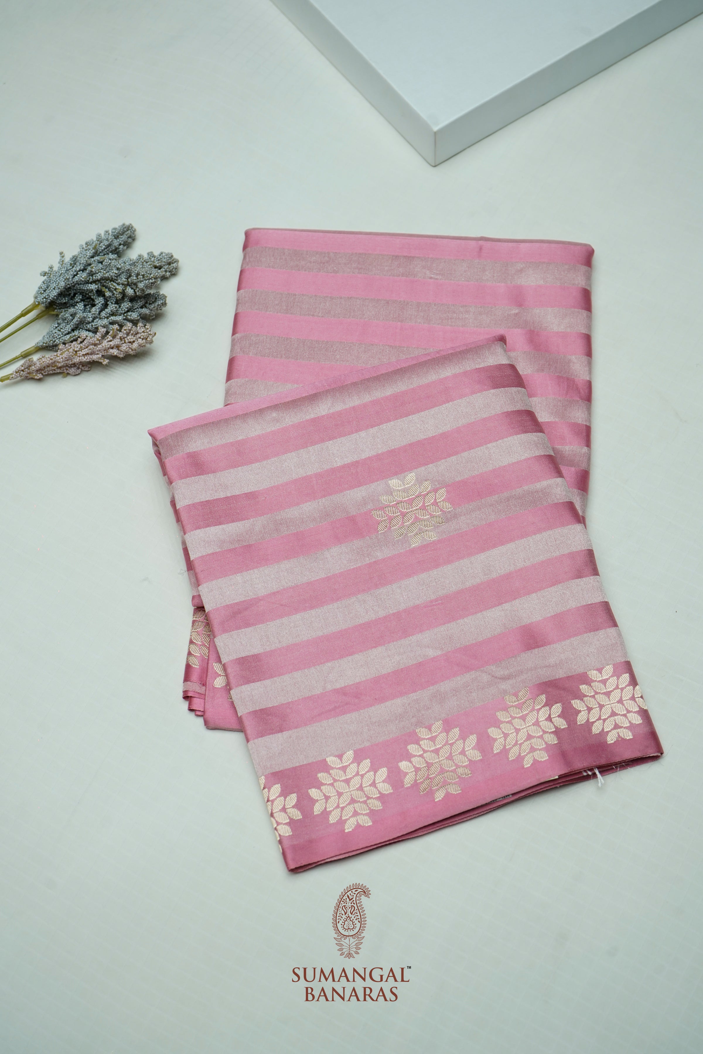 Handwoven Onion Pink Banarasi Mashru Silk Saree