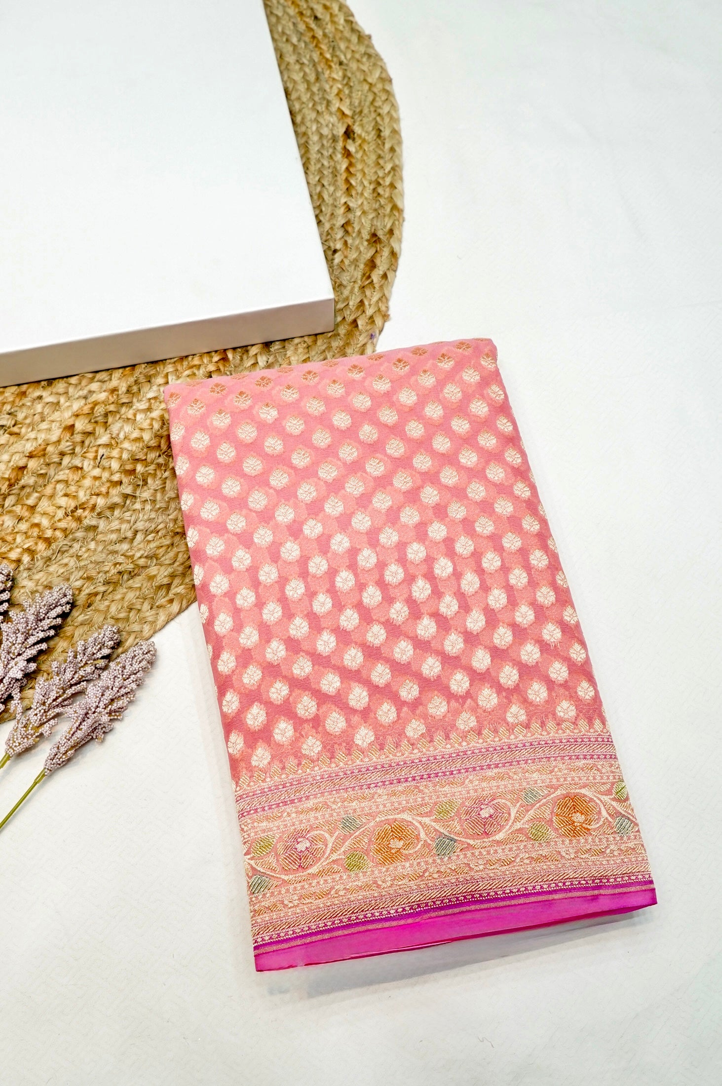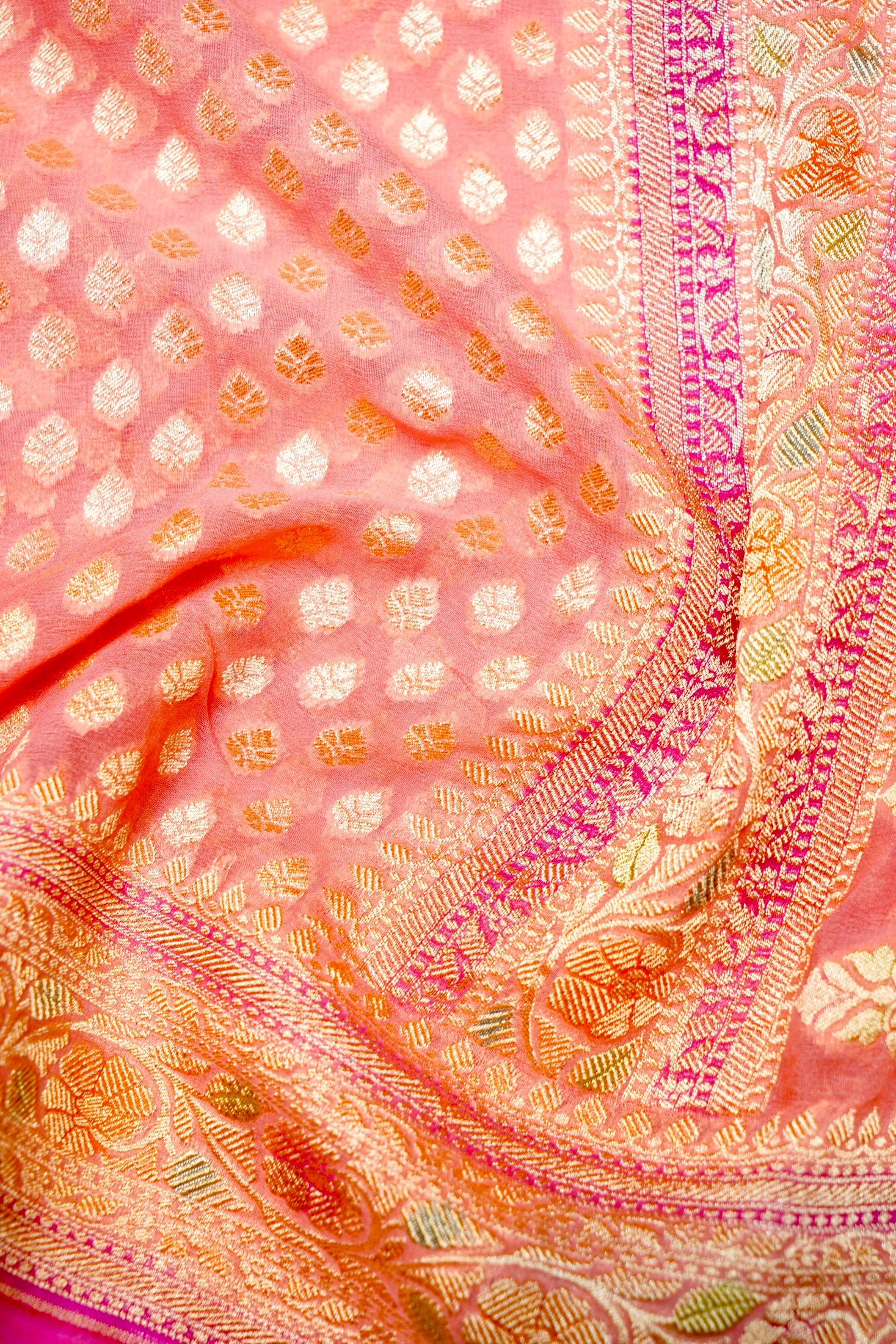 Handwoven Peach Banarasi Khaddi Georgette Saree