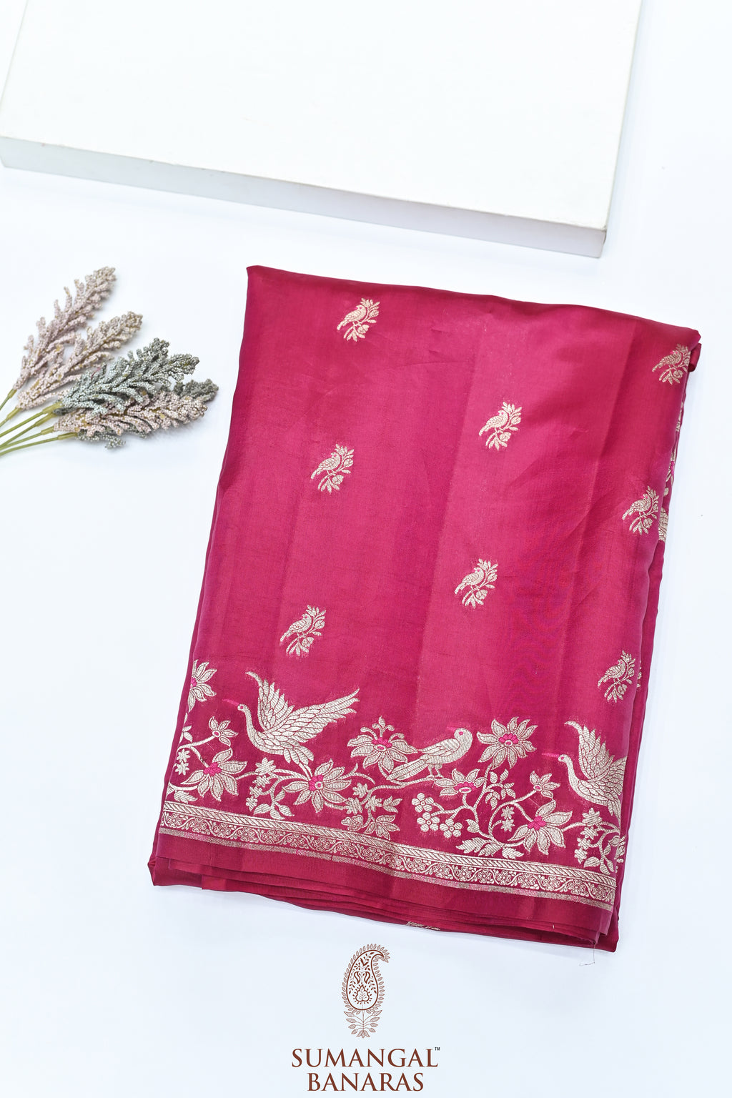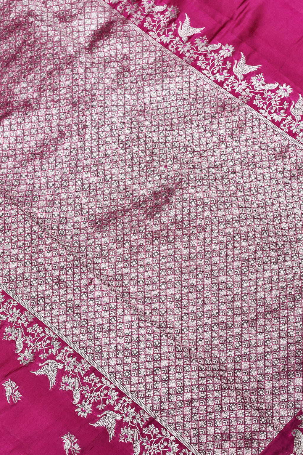Handwoven Rani Pink Motif Banarasi Katan Soft Silk Saree