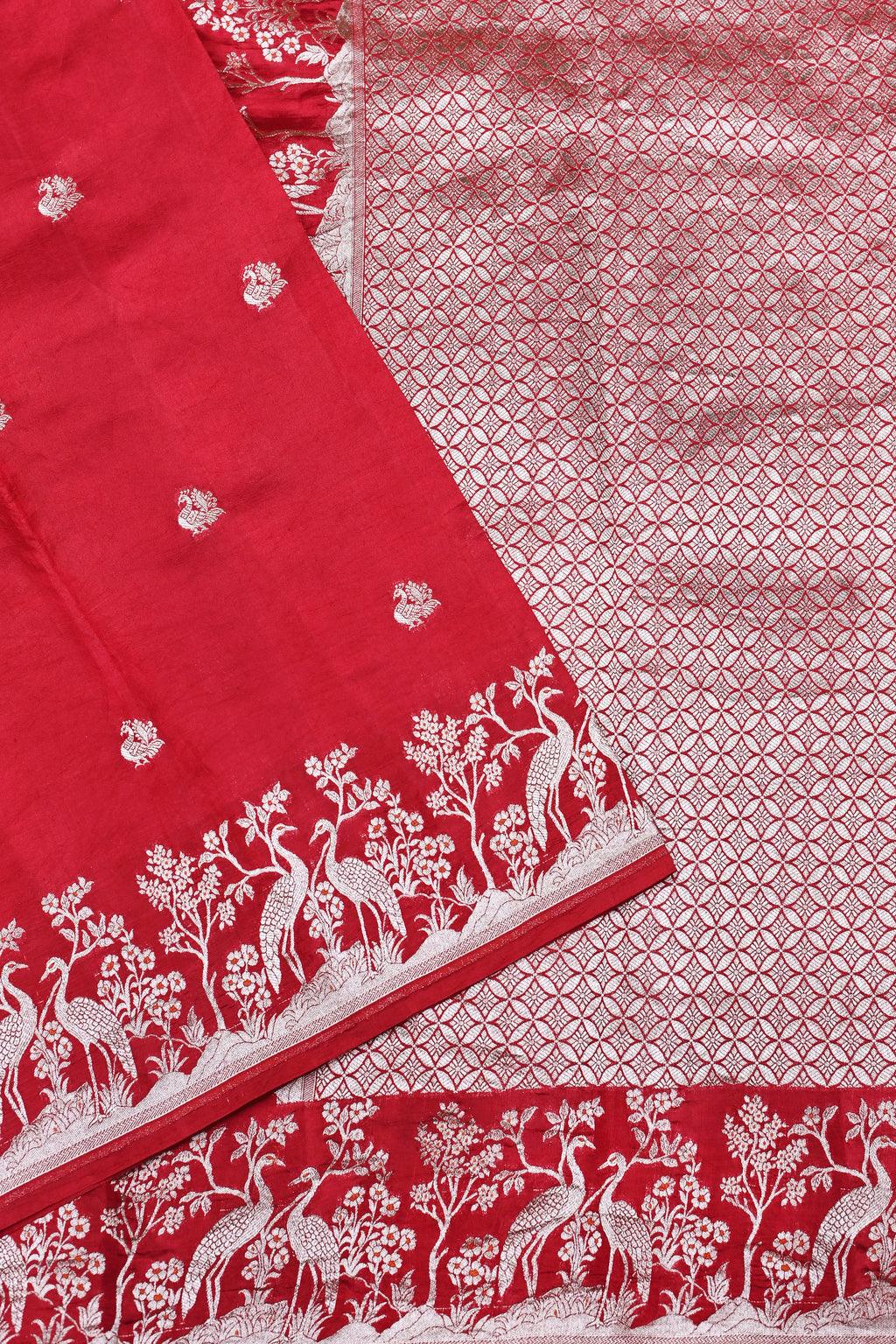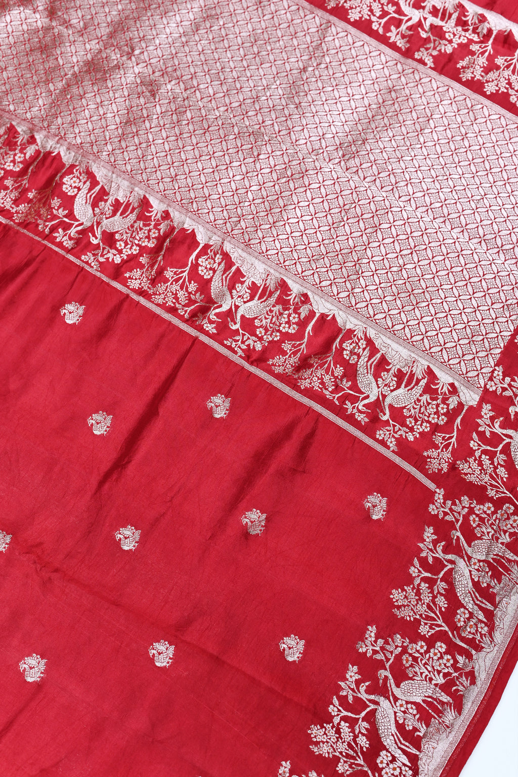 Handwoven Red Motif Banarasi Soft Silk Saree