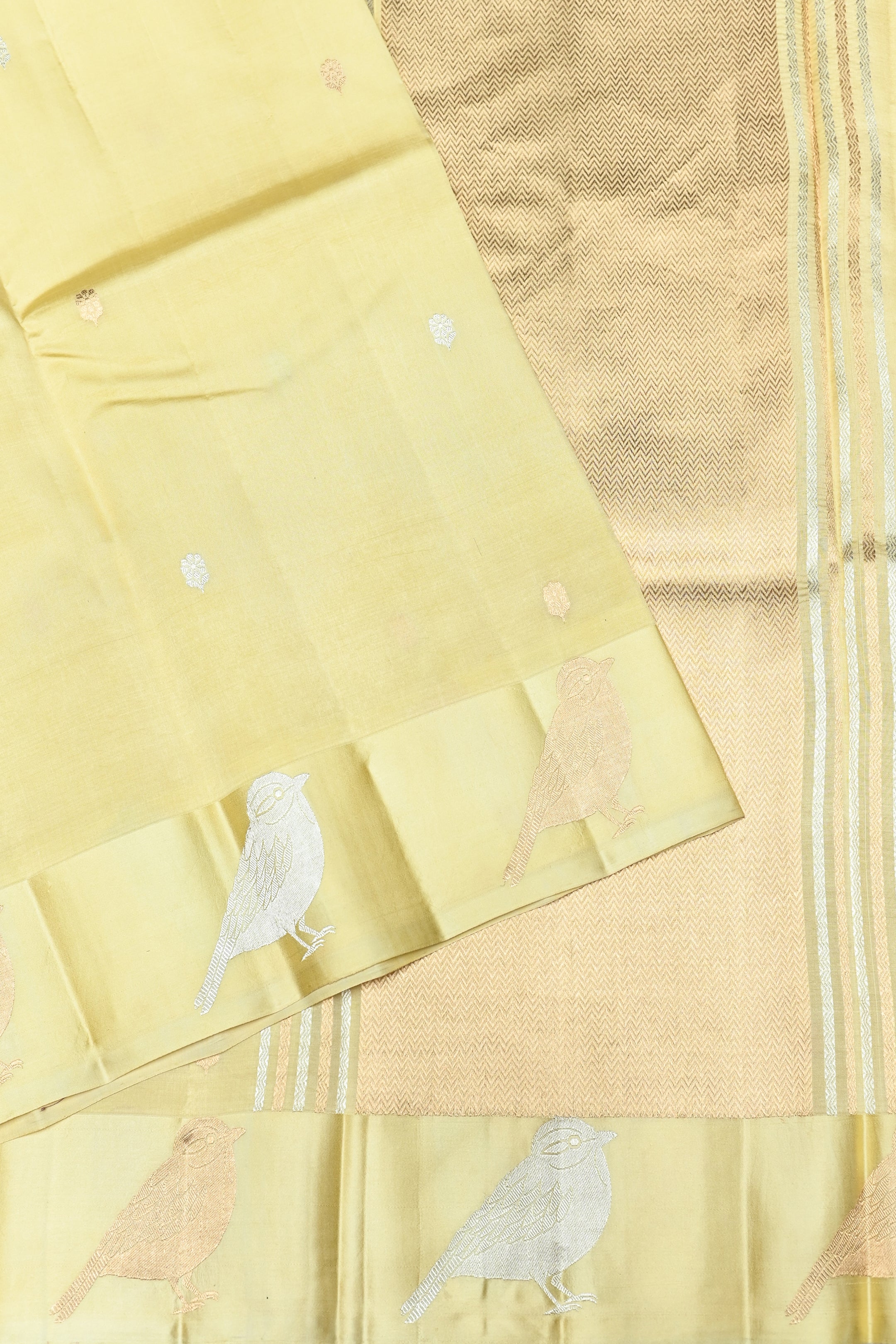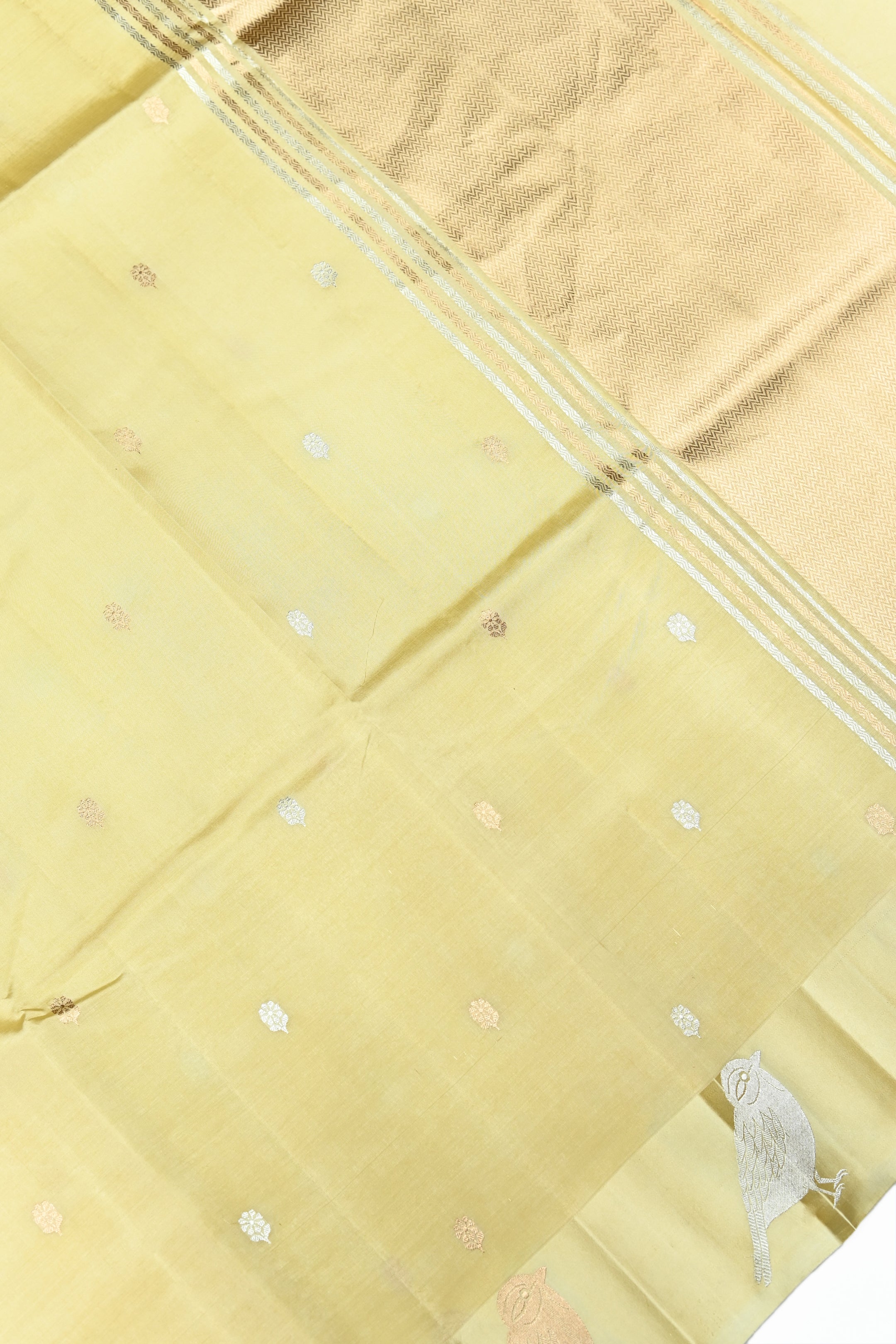 This Handwoven Soft Yellow Banarasi Katan Saree is a radiant blend of traditional craftsmanship and graceful elegance. Meticulously woven on traditional handlooms using pure katan silk, it features a smooth texture, rich natural sheen, and a beautifully structured drape. The soft yellow hue adds a fresh, uplifting charm, while delicate zari weaving highlights classic Banarasi motifs with subtle shimmer. Ideal for weddings, festive celebrations, daytime functions, and special occasions, this saree reflects timeless Banarasi heritage with a refined and contemporary appeal.
