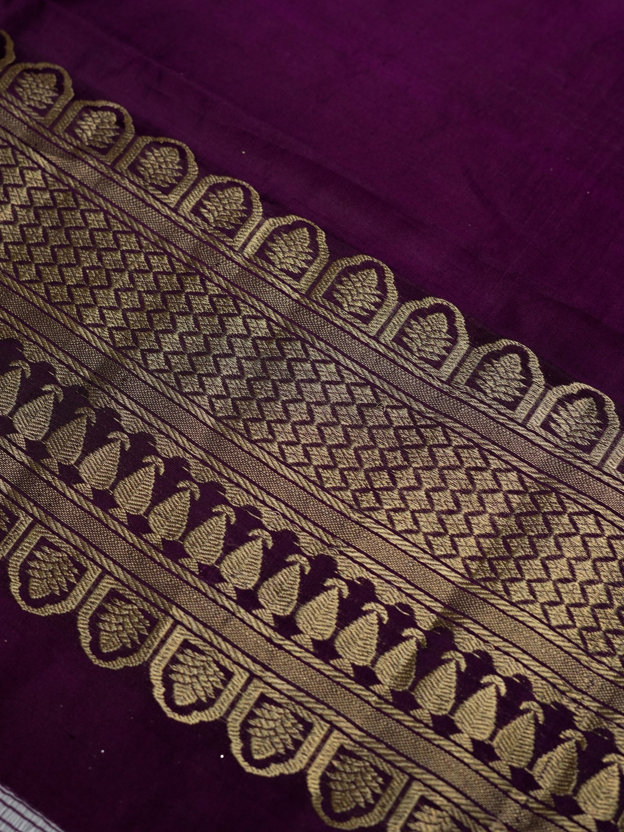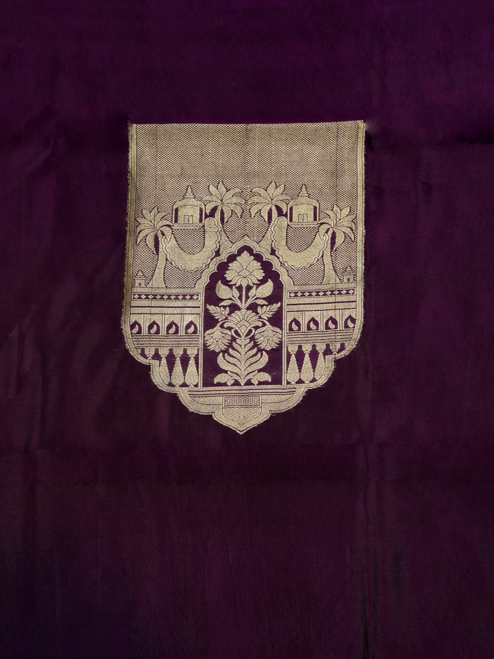 Rich and regal, this Handwoven Wine Banarasi Brocade Mashru Katan Silk Co-ord Set is a true reflection of Banarasi craftsmanship. The deep wine base is beautifully enhanced with intricate zari weaving, featuring traditional architectural and floral motifs that add royal depth to the design. Woven in luxurious Mashru Katan silk, it offers a smooth texture with a graceful drape. Ideal for weddings, festive occasions, and special celebrations, this suit embodies timeless elegance with heritage artistry.