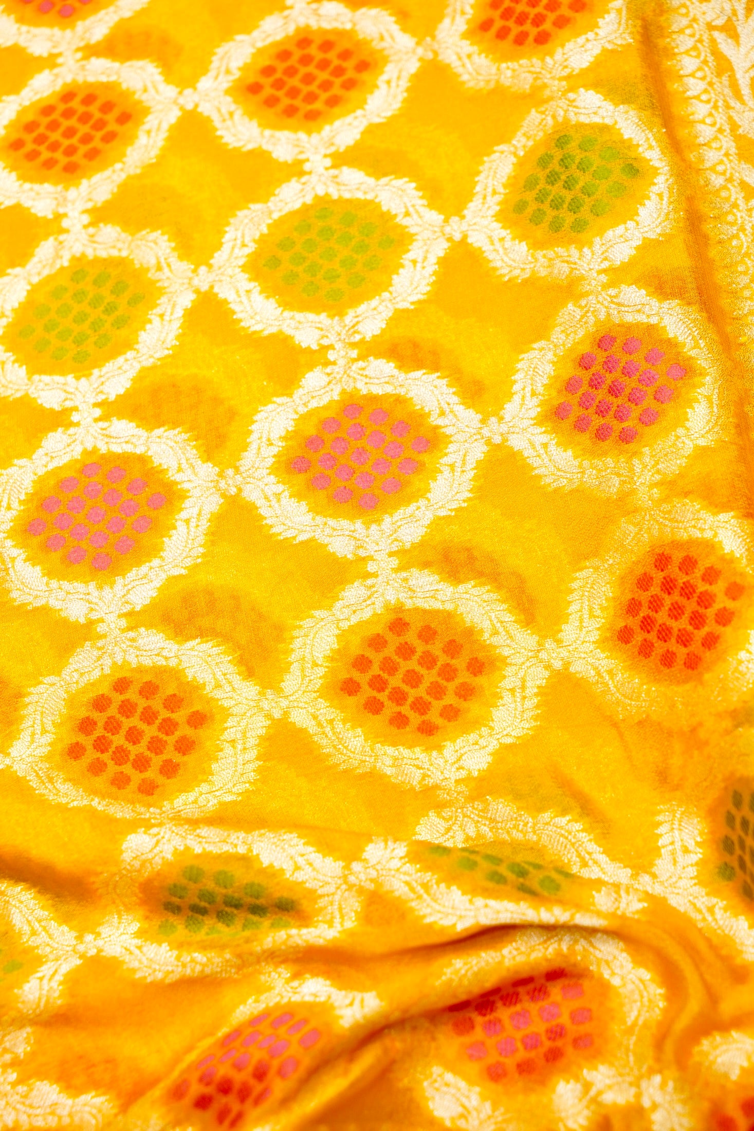Handwoven Yellow Banarasi Khaddi Georgette Saree